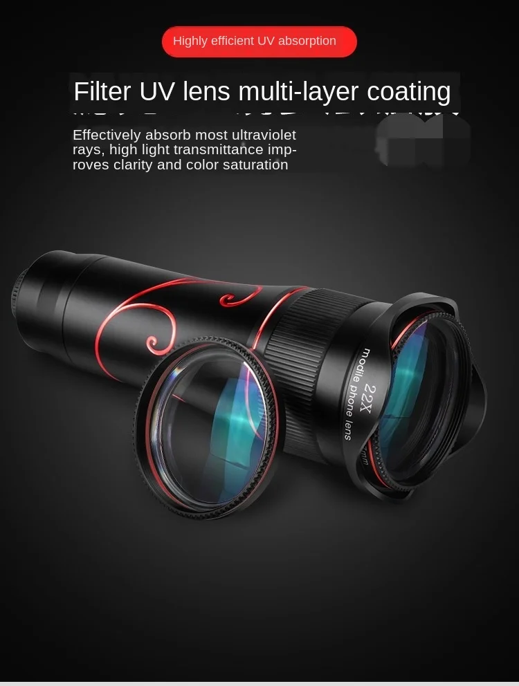 0 Response to "Deals External 22 times mobile phone telephoto lens distortion-free 22X zoom lens HD 4K telescope bracket"
